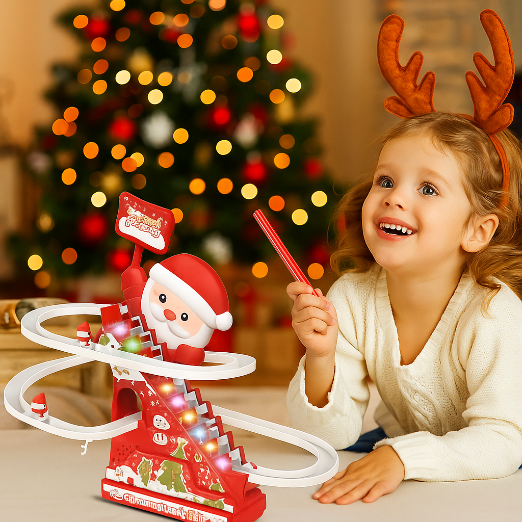 This joyful creation delivers exactly that — a self-moving, music-filled Santa-themed roller coaster that keeps children amazed for hours. Once switched on, the cheerful Santa figures climb the stairs and slide down in loops of fun, all while colorful lights flash and festive music plays. It’s more than a toy — it’s a magical experience that fills your home with joy and motion.