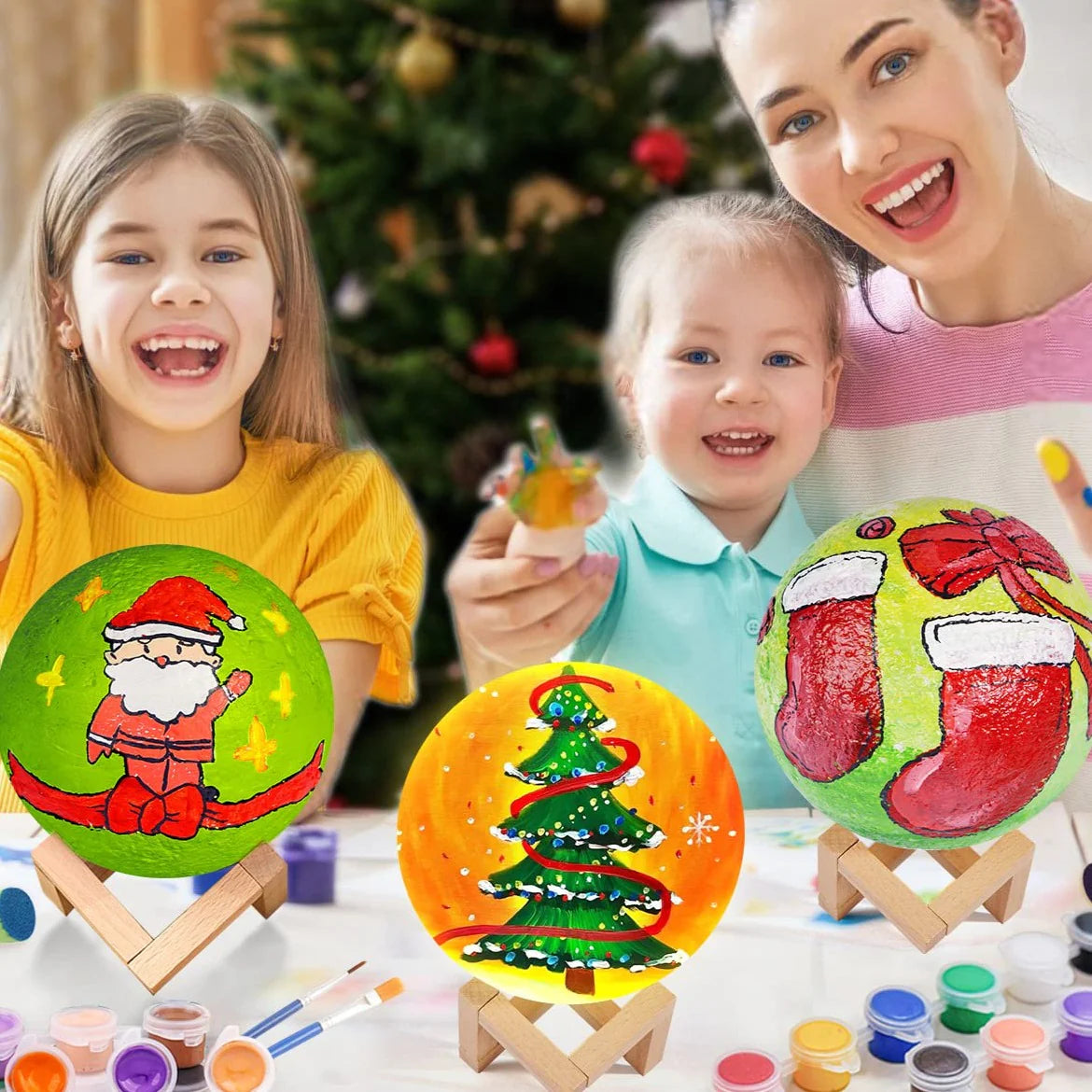 With the DIY Custom Moon Lamp, you can unlock your creativity and design your own one-of-a-kind decorative lamp. This kit includes everything you need – a white round lamp, painting materials, sponges, and instructions – to make a personalized moon lamp that will shine in any space.