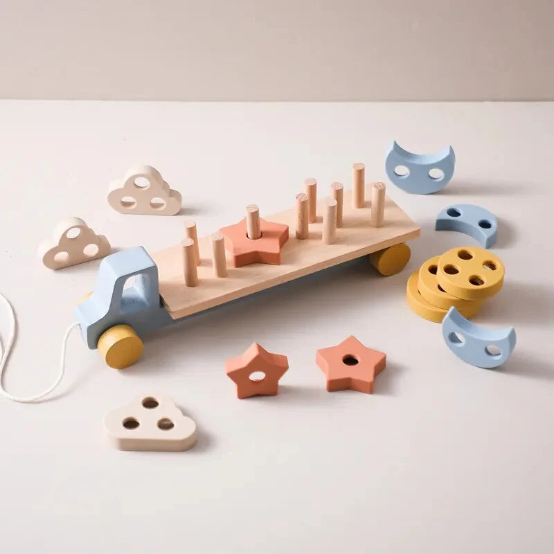Inspired by Montessori principles, the Stack & Roll Truck helps children improve hand-eye coordination, shape recognition, and problem-solving skills. The different textures and materials provide sensory stimulation, while the act of stacking and sorting boosts creativity and logical thinking. The fun and engaging truck design makes learning exciting and interactive!