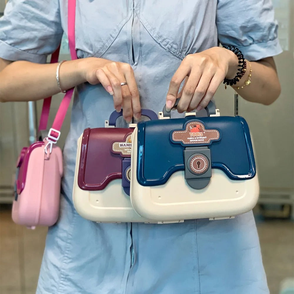 The set comes fully equipped with a syringe, stethoscope, medicine bottles, teeth, thermometer, glasses, and other accessories. Everything is neatly stored in the included box and can easily be carried using the handle.